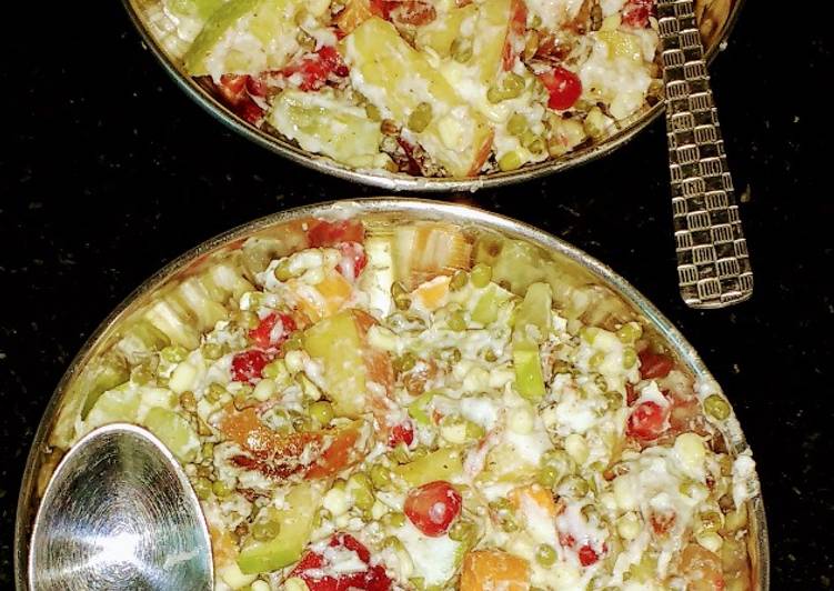 Simple Way to Make Perfect FreshCurdANDFruitsSaladWithSproutedMoong